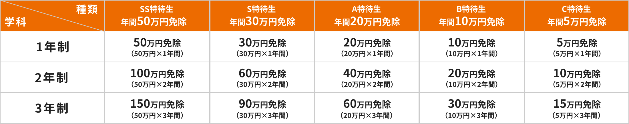 学費免除!選考に合格すると、学費の一部が免除されます!特待生の種類にもよりますが、最大で年間50万円の免除を受けられます。返済の義務はありません。