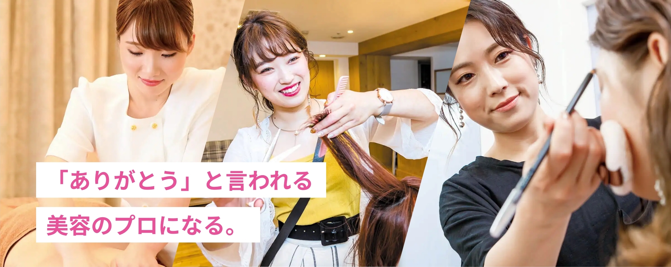 美容師、メイク、エステティシャン、ネイリストなど美容のプロを目指す専門学校です。確かな知識や技術に加えて、チームワークや行動力などあきらめない向上心などを身につけた人材を育成しています。